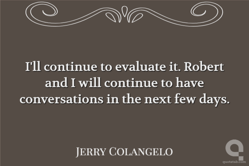 I'll continue to evaluate it. Robert and I will continue to have conversations in the next few days.