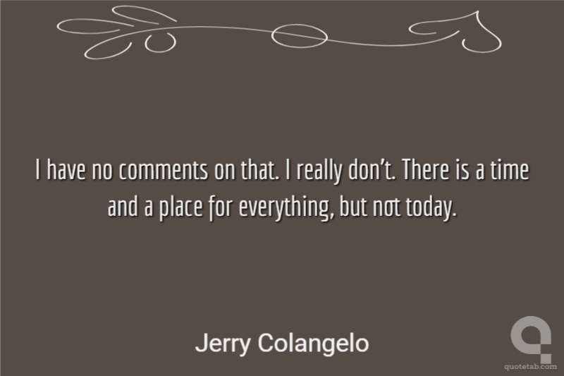 I have no comments on that. I really don't. There is a time and a place for everything, but not today.