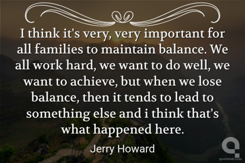 I think it's very, very important for all families to maintain balance. We all work hard, we want to do well, we want to achieve, but when we lose balance, then it tends to lead to something else and i think that's what happened here.