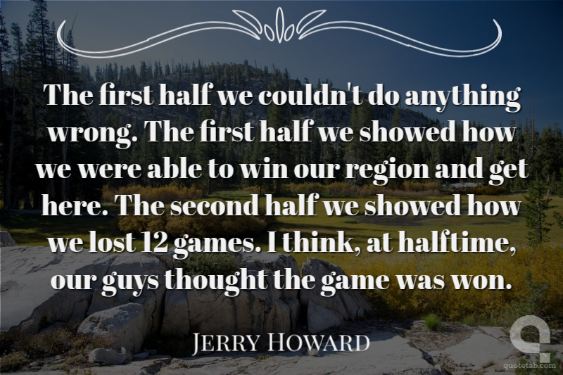 The first half we couldn't do anything wrong. The first half we showed how we were able to win our region and get here. The second half we showed how we lost 12 games. I think, at halftime, our guys thought the game was won.