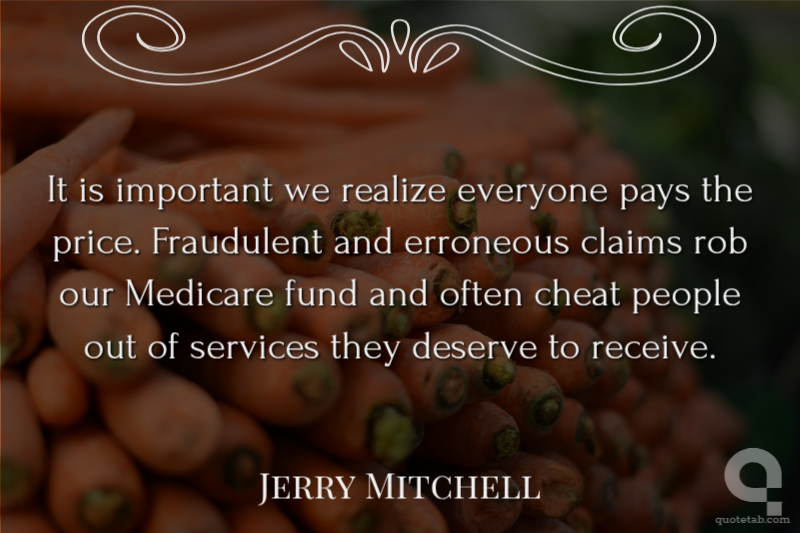 It is important we realize everyone pays the price. Fraudulent and erroneous claims rob our Medicare fund and often cheat people out of services they deserve to receive.