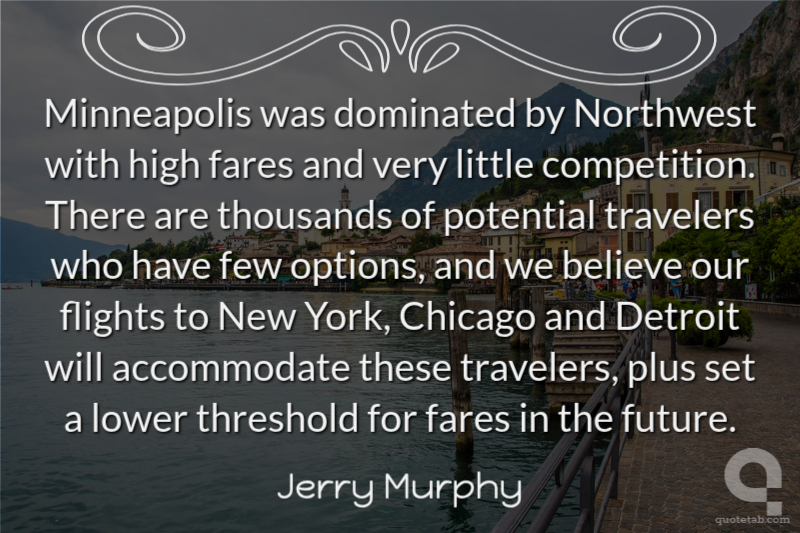 Minneapolis was dominated by Northwest with high fares and very little competition. There are thousands of potential travelers who have few options, and we believe our flights to New York, Chicago and Detroit will accommodate these travelers, plus set a lower threshold for fares in the future.