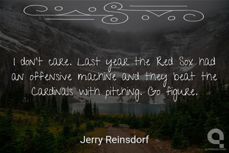 I don't care. Last year the Red Sox had an offensive machine and they beat the Cardinals with pitching. Go figure.