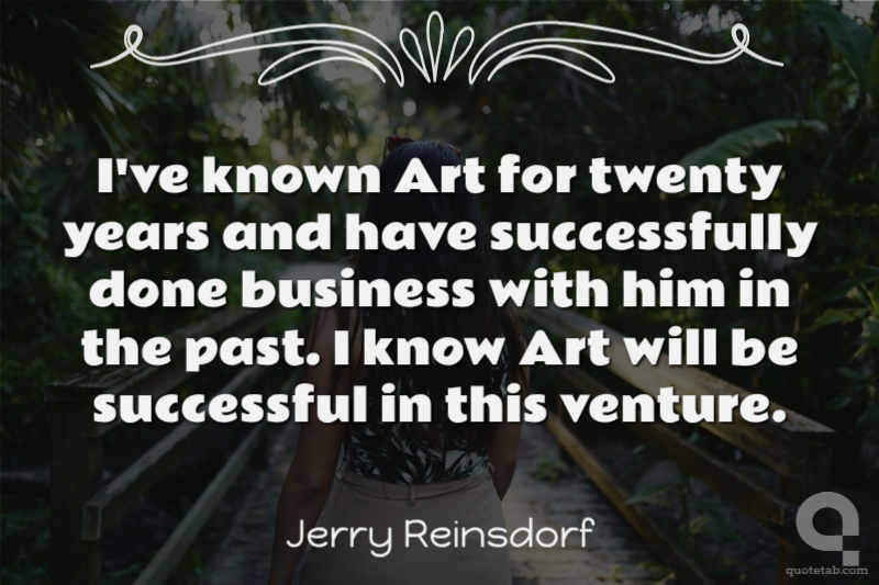 I've known Art for twenty years and have successfully done business with him in the past. I know Art will be successful in this venture.