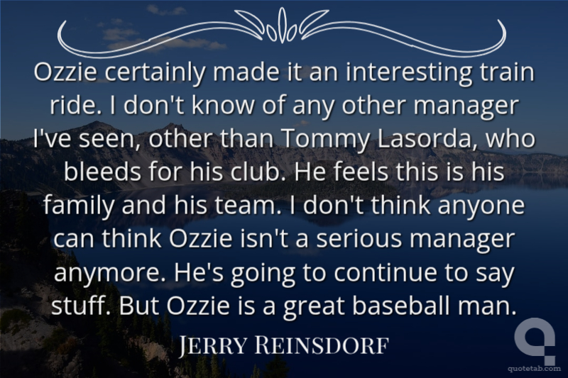 Ozzie certainly made it an interesting train ride. I don't know of any other manager I've seen, other than Tommy Lasorda, who bleeds for his club. He feels this is his family and his team. I don't think anyone can think Ozzie isn't a serious manager anymore. He's going to continue to say stuff. But Ozzie is a great baseball man.