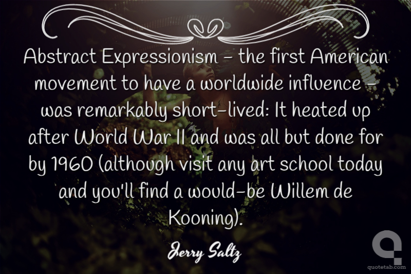 Abstract Expressionism - the first American movement to have a worldwide influence - was remarkably short-lived: It heated up after World War II and was all but done for by 1960 (although visit any art school today and you'll find a would-be Willem de Kooning).