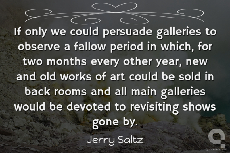 If only we could persuade galleries to observe a fallow period in which, for two months every other year, new and old works of art could be sold in back rooms and all main galleries would be devoted to revisiting shows gone by.