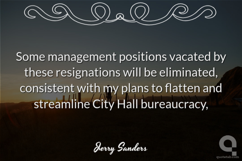 Some management positions vacated by these resignations will be eliminated, consistent with my plans to flatten and streamline City Hall bureaucracy,