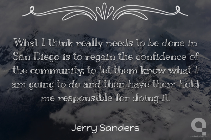 What I think really needs to be done in San Diego is to regain the confidence of the community, to let them know what I am going to do and then have them hold me responsible for doing it.