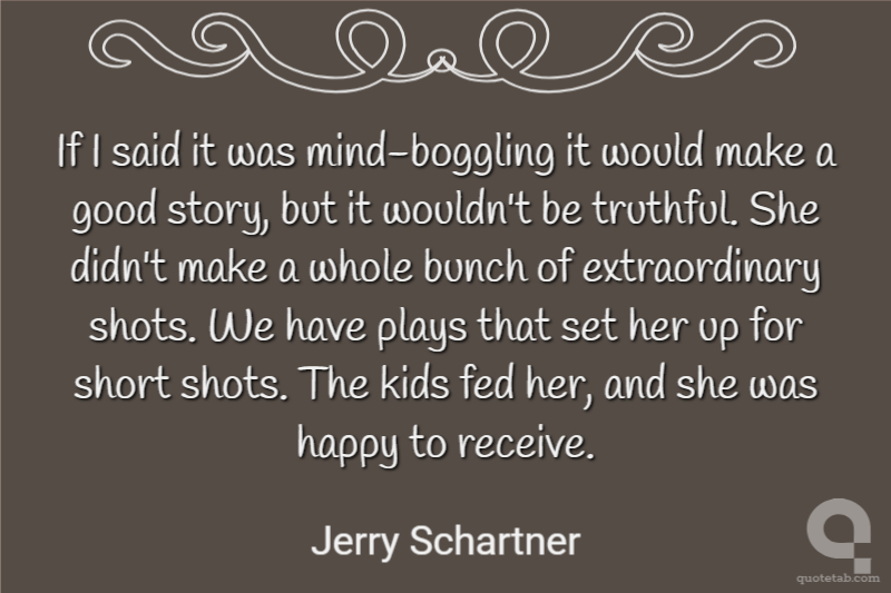 If I said it was mind-boggling it would make a good story, but it wouldn't be truthful. She didn't make a whole bunch of extraordinary shots. We have plays that set her up for short shots. The kids fed her, and she was happy to receive.