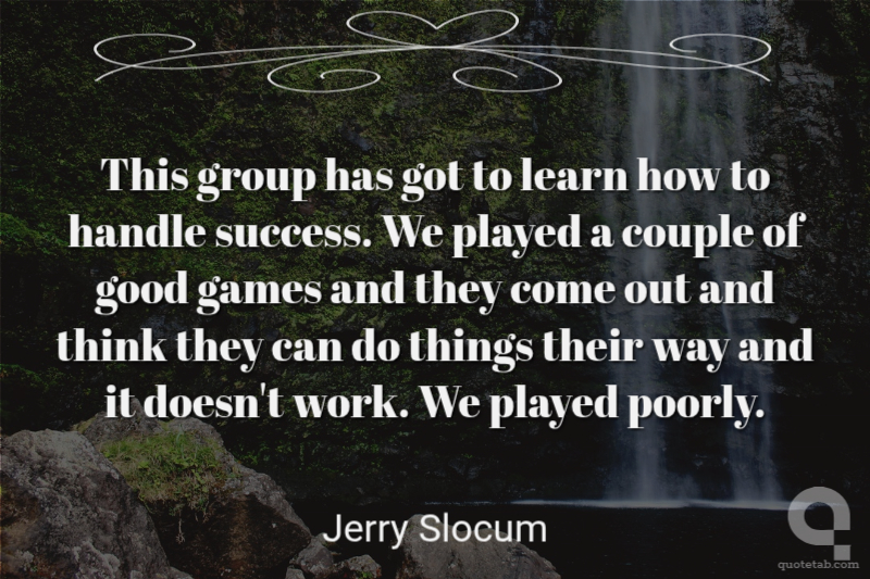 This group has got to learn how to handle success. We played a couple of good games and they come out and think they can do things their way and it doesn't work. We played poorly.