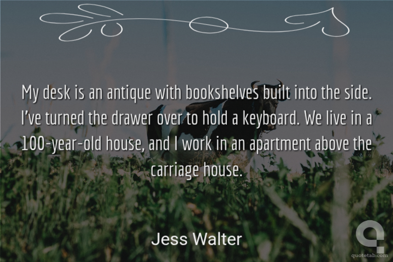 My desk is an antique with bookshelves built into the side. I've turned the drawer over to hold a keyboard. We live in a 100-year-old house, and I work in an apartment above the carriage house.