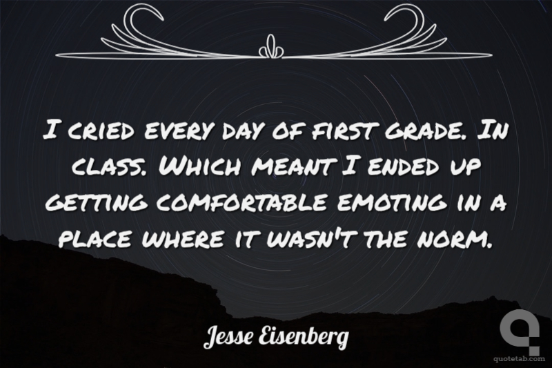 I cried every day of first grade. In class. Which meant I ended up getting comfortable emoting in a place where it wasn't the norm.