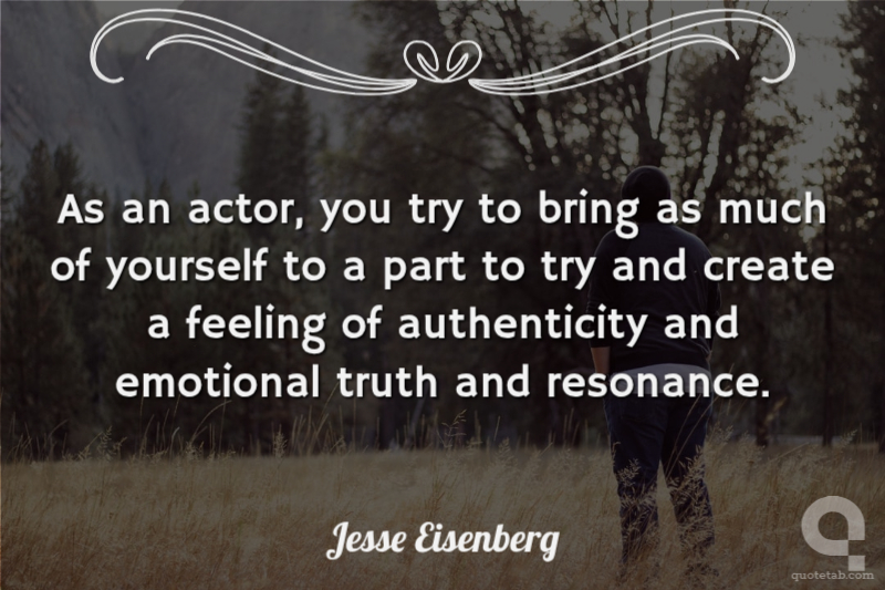 As an actor, you try to bring as much of yourself to a part to try and create a feeling of authenticity and emotional truth and resonance.