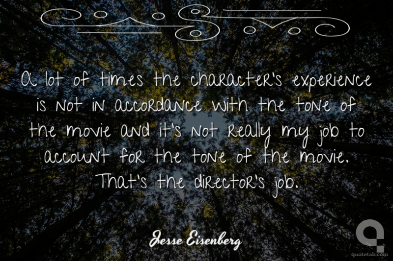 A lot of times the character's experience is not in accordance with the tone of the movie and it's not really my job to account for the tone of the movie. That's the director's job.