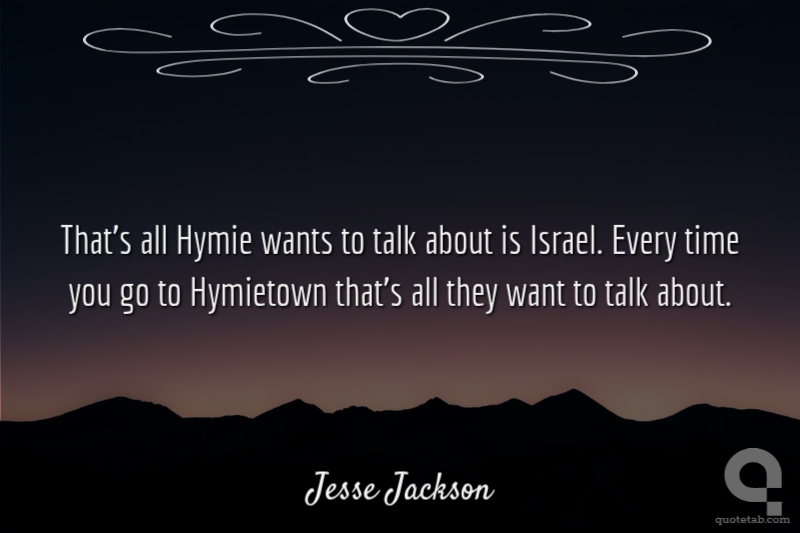 That's all Hymie wants to talk about is Israel. Every time you go to Hymietown that's all they want to talk about.