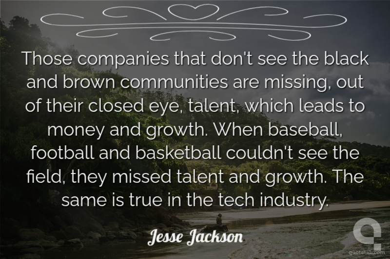 Those companies that don't see the black and brown communities are missing, out of their closed eye, talent, which leads to money and growth. When baseball, football and basketball couldn't see the field, they missed talent and growth. The same is true in the tech industry.