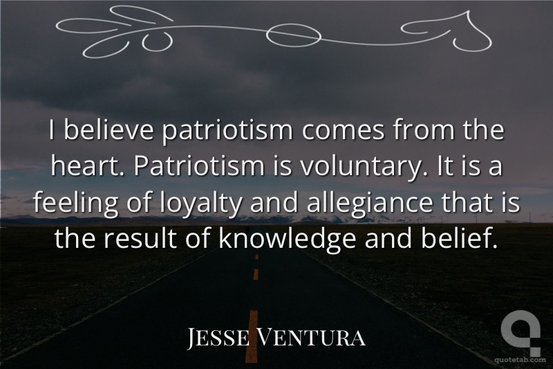 I believe patriotism comes from the heart. Patriotism is voluntary. It is a feeling of loyalty and allegiance that is the result of knowledge and belief.