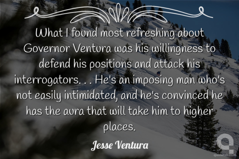 What I found most refreshing about Governor Ventura was his willingness to defend his positions and attack his interrogators. . . He's an imposing man who's not easily intimidated, and he's convinced he has the aura that will take him to higher places.