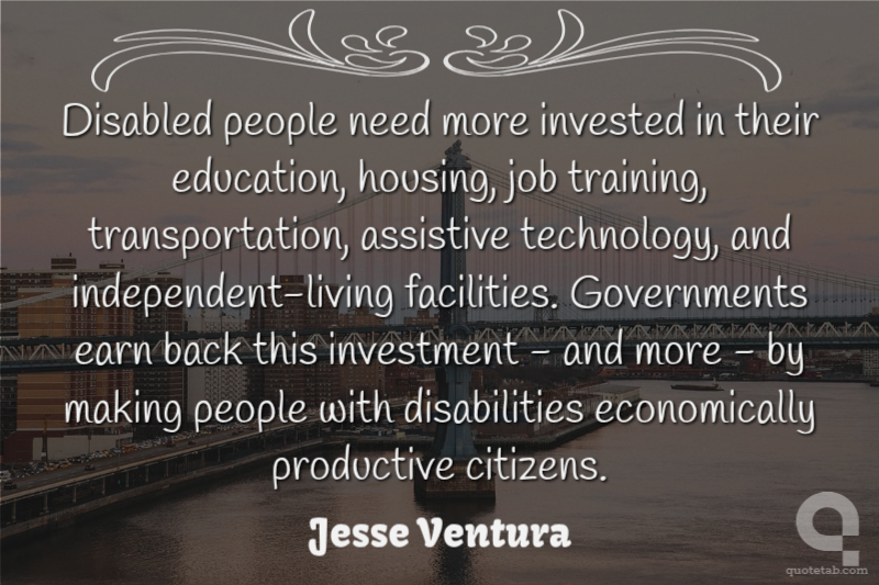 Disabled people need more invested in their education, housing, job training, transportation, assistive technology, and independent-living facilities. Governments earn back this investment - and more - by making people with disabilities economically productive citizens.