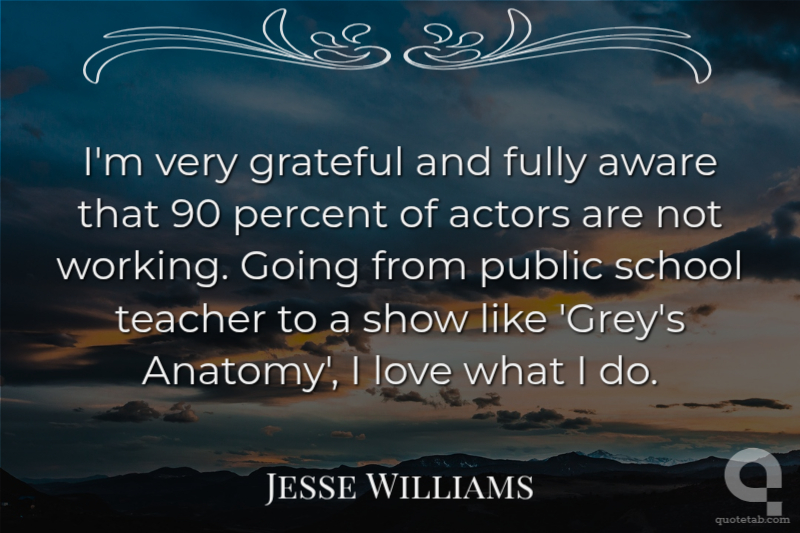 I'm very grateful and fully aware that 90 percent of actors are not working. Going from public school teacher to a show like 'Grey's Anatomy', I love what I do.