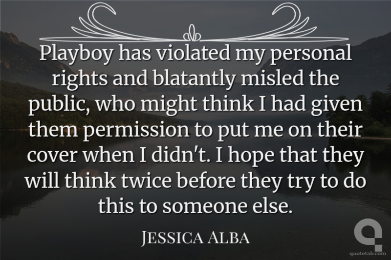 Playboy has violated my personal rights and blatantly misled the public, who might think I had given them permission to put me on their cover when I didn't. I hope that they will think twice before they try to do this to someone else.