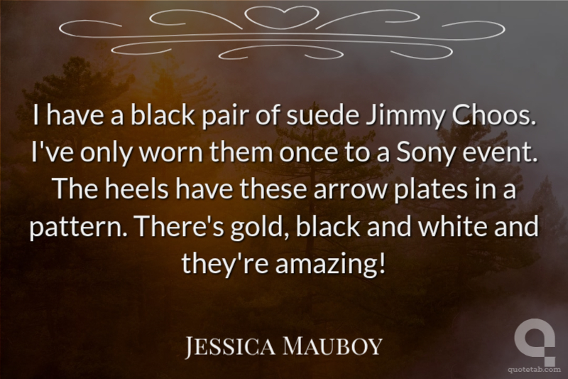 I have a black pair of suede Jimmy Choos. I've only worn them once to a Sony event. The heels have these arrow plates in a pattern. There's gold, black and white and they're amazing!