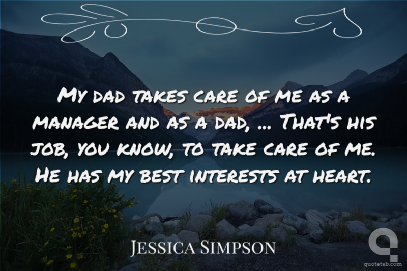 My dad takes care of me as a manager and as a dad, ... That's his job, you know, to take care of me. He has my best interests at heart.