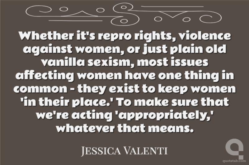 Whether it's repro rights, violence against women, or just plain old vanilla sexism, most issues affecting women have one thing in common - they exist to keep women 'in their place.' To make sure that we're acting 'appropriately,' whatever that means.