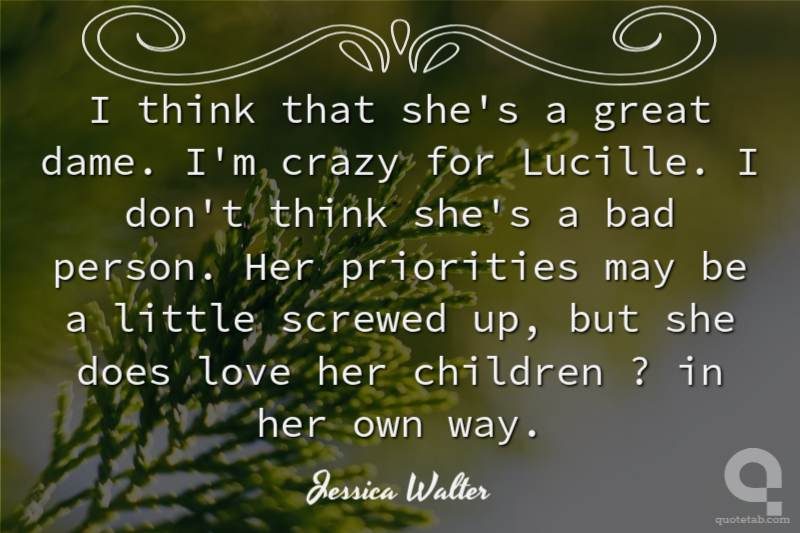 I think that she's a great dame. I'm crazy for Lucille. I don't think she's a bad person. Her priorities may be a little screwed up, but she does love her children ? in her own way.