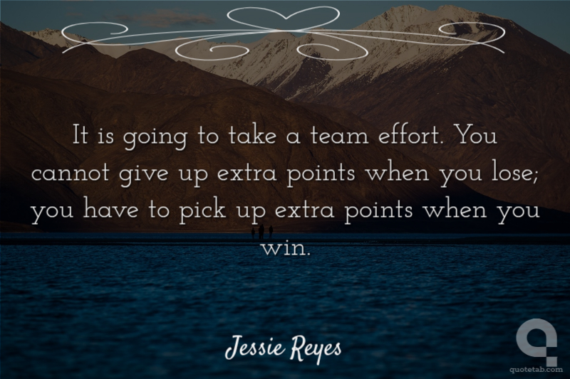 It is going to take a team effort. You cannot give up extra points when you lose; you have to pick up extra points when you win.