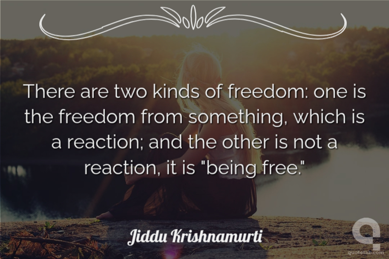 There are two kinds of freedom: one is the freedom from something, which is a reaction; and the other is not a reaction, it is "being free."