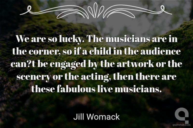 We are so lucky. The musicians are in the corner, so if a child in the audience can?t be engaged by the artwork or the scenery or the acting, then there are these fabulous live musicians.