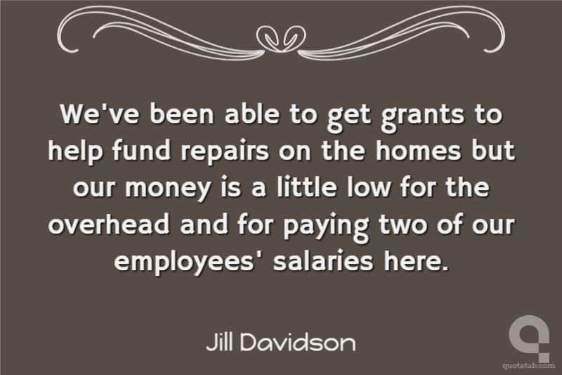 We've been able to get grants to help fund repairs on the homes but our money is a little low for the overhead and for paying two of our employees' salaries here.