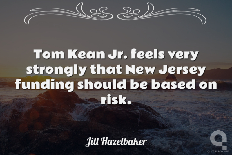 Tom Kean Jr. feels very strongly that New Jersey funding should be based on risk.
