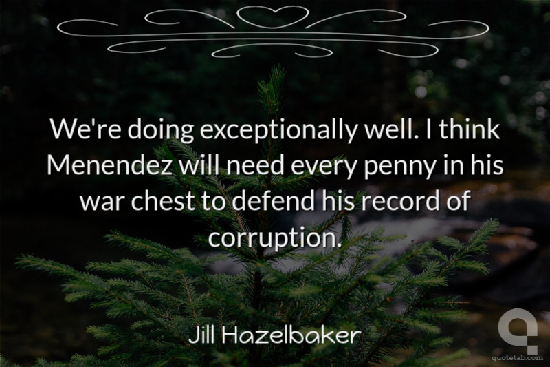 We're doing exceptionally well. I think Menendez will need every penny in his war chest to defend his record of corruption.
