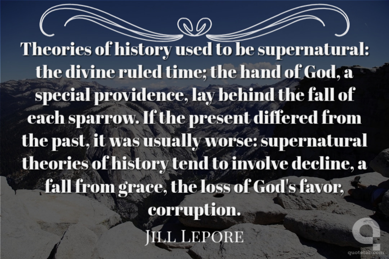 Theories of history used to be supernatural: the divine ruled time; the hand of God, a special providence, lay behind the fall of each sparrow. If the present differed from the past, it was usually worse: supernatural theories of history tend to involve decline, a fall from grace, the loss of God's favor, corruption.
