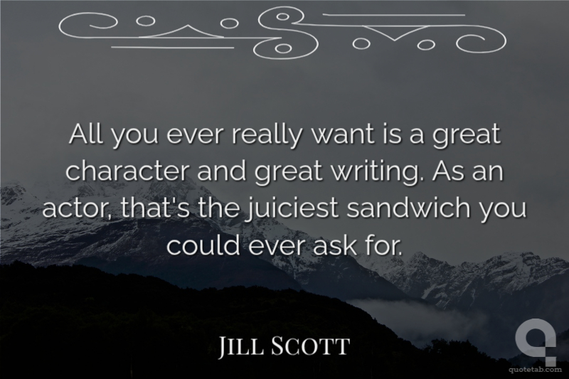 All you ever really want is a great character and great writing. As an actor, that's the juiciest sandwich you could ever ask for.