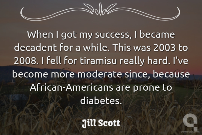 When I got my success, I became decadent for a while. This was 2003 to 2008. I fell for tiramisu really hard. I've become more moderate since, because African-Americans are prone to diabetes.