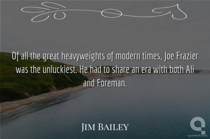Of all the great heavyweights of modern times, Joe Frazier was the unluckiest. He had to share an era with both Ali and Foreman.
