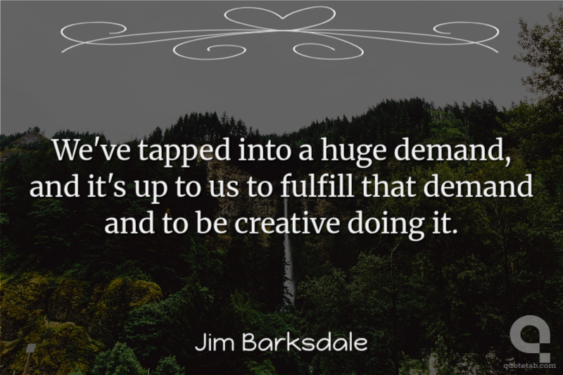 We've tapped into a huge demand, and it's up to us to fulfill that demand and to be creative doing it.