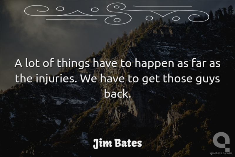 A lot of things have to happen as far as the injuries. We have to get those guys back.