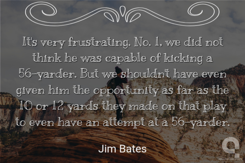 It's very frustrating. No. 1, we did not think he was capable of kicking a 56-yarder. But we shouldn't have even given him the opportunity as far as the 10 or 12 yards they made on that play to even have an attempt at a 56-yarder.