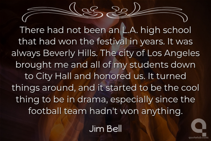 There had not been an L.A. high school that had won the festival in years. It was always Beverly Hills. The city of Los Angeles brought me and all of my students down to City Hall and honored us. It turned things around, and it started to be the cool thing to be in drama, especially since the football team hadn't won anything.