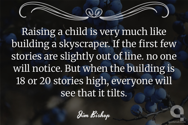 Raising a child is very much like building a skyscraper. If the first few stories are slightly out of line. no one will notice. But when the building is 18 or 20 stories high, everyone will see that it tilts.