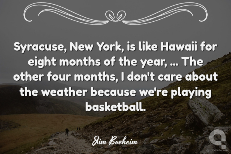 Syracuse, New York, is like Hawaii for eight months of the year, ... The other four months, I don't care about the weather because we're playing basketball.