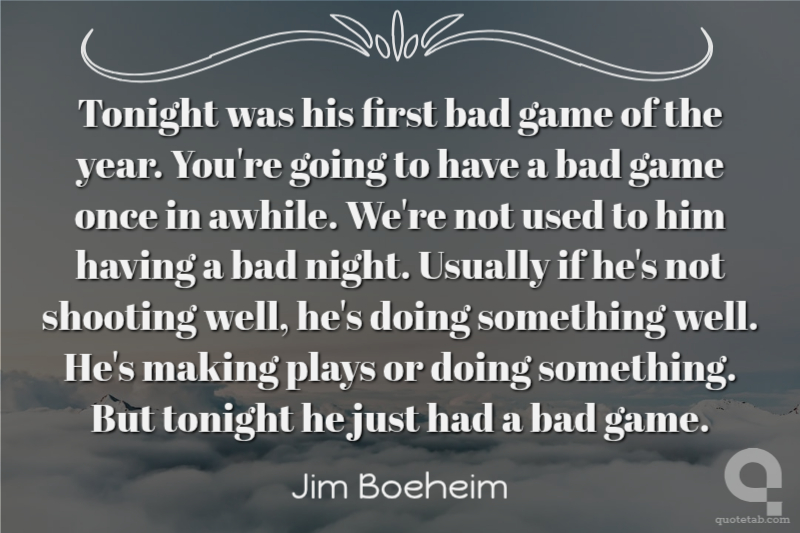 Tonight was his first bad game of the year. You're going to have a bad game once in awhile. We're not used to him having a bad night. Usually if he's not shooting well, he's doing something well. He's making plays or doing something. But tonight he just had a bad game.