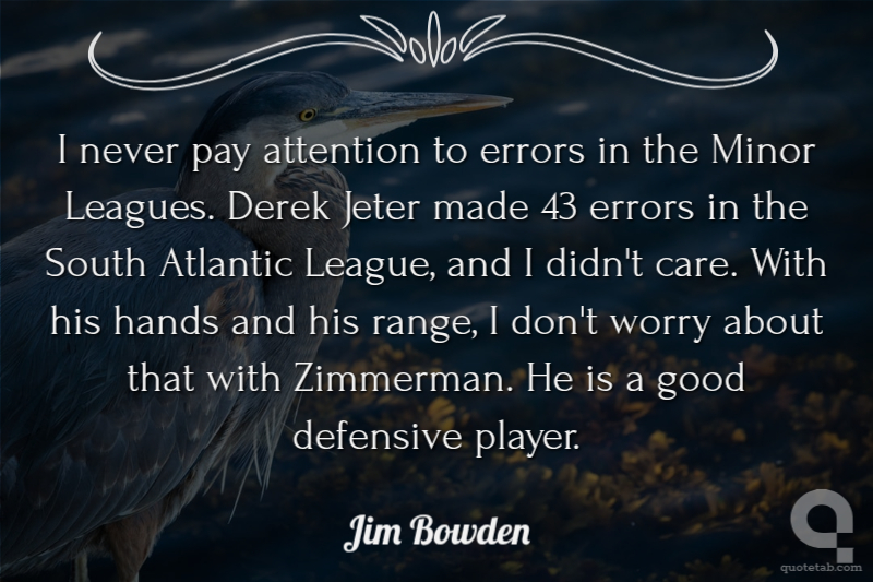 I never pay attention to errors in the Minor Leagues. Derek Jeter made 43 errors in the South Atlantic League, and I didn't care. With his hands and his range, I don't worry about that with Zimmerman. He is a good defensive player.