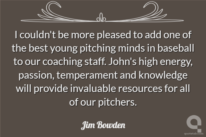 I couldn't be more pleased to add one of the best young pitching minds in baseball to our coaching staff. John's high energy, passion, temperament and knowledge will provide invaluable resources for all of our pitchers.