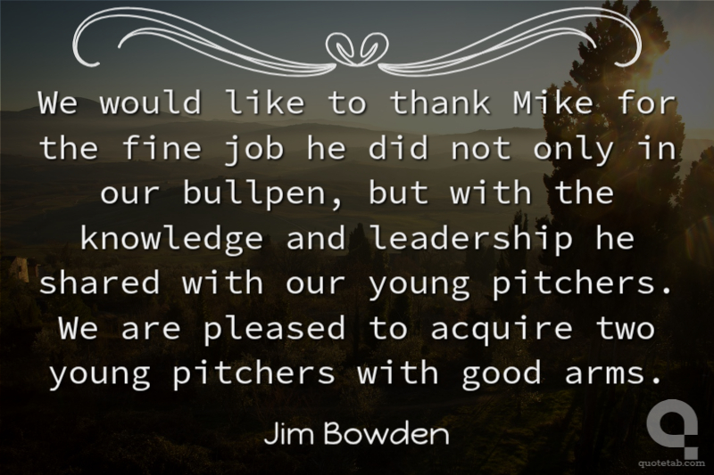 We would like to thank Mike for the fine job he did not only in our bullpen, but with the knowledge and leadership he shared with our young pitchers. We are pleased to acquire two young pitchers with good arms.